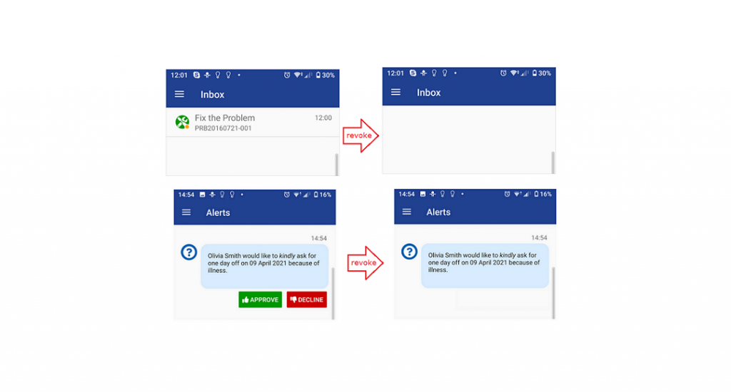 As the result, when the task status is changed to Closed in a database record, all update record requests with the Closed status will be revoked automatically from the assigned users’ mobile devices.