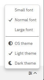 Our old UI had fairly large CSS block to handle “dense” version of the interface. With relative units, new UI simply scales the font on HTML level. Font selector does nothing more than setting font size to 12px, 14px and 16px for small, normal and large font.