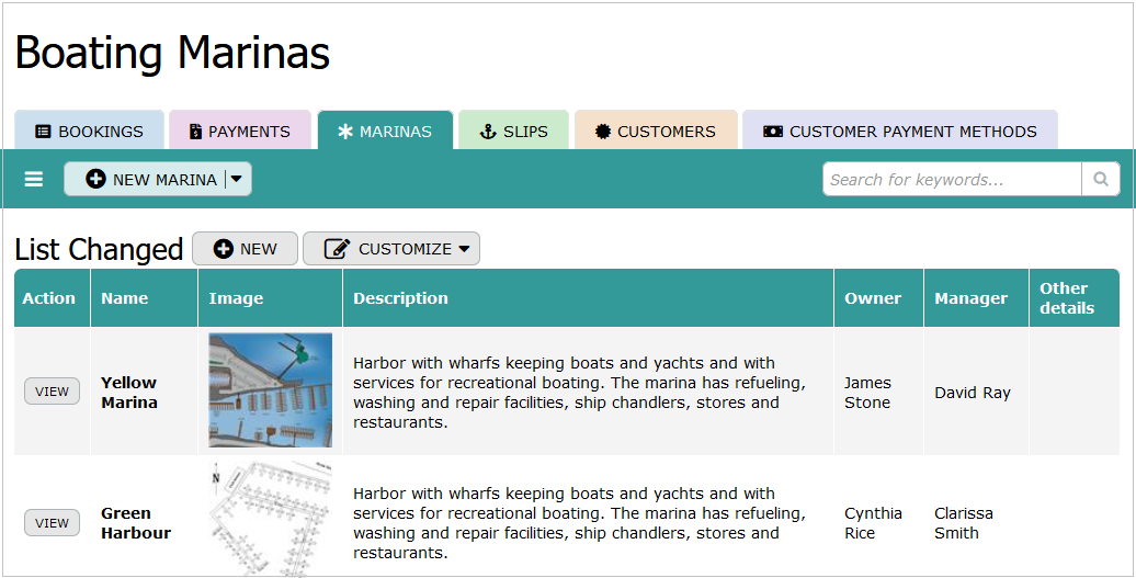 This structured approach ensures that all aspects of marina operations are well-organized and efficiently managed, providing a seamless experience for both marina staff and customers.