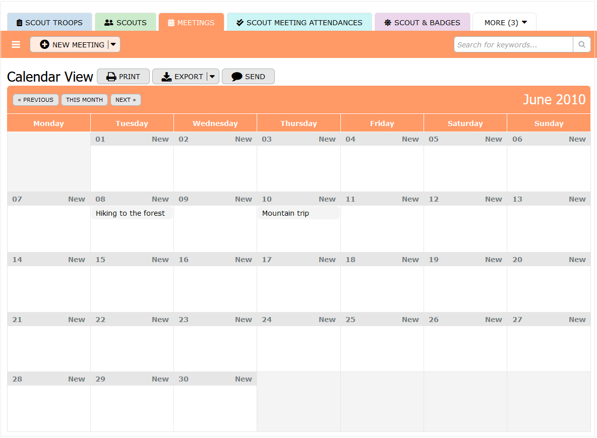 This structured approach to managing Boy Scout troop operations ensures that all aspects of scouting are well-organized, facilitating effective communication, planning, and recognition of achievements within the scouting community.