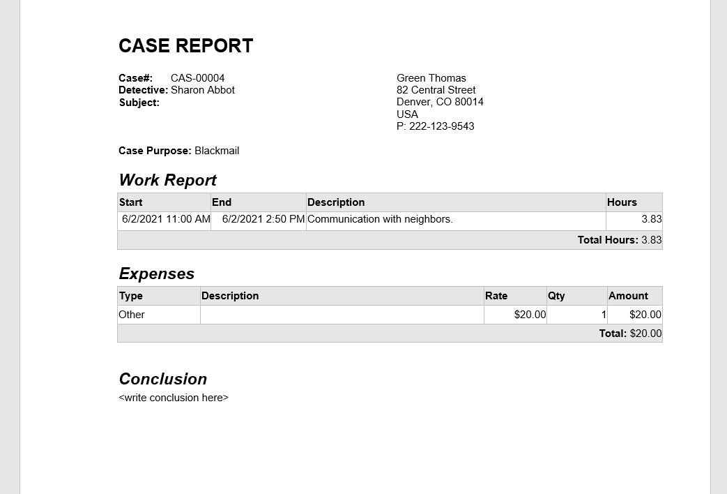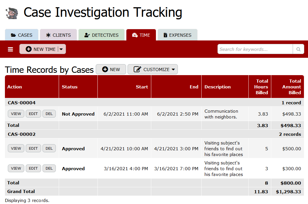 By utilizing the "Case Investigation Tracking" database, agencies can streamline their investigative processes, enhance case management efficiency, maintain comprehensive records, and ensure transparency in client interactions and financial transactions. This structured approach supports investigative teams in delivering thorough, well-documented outcomes for each case they handle.