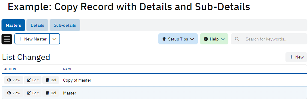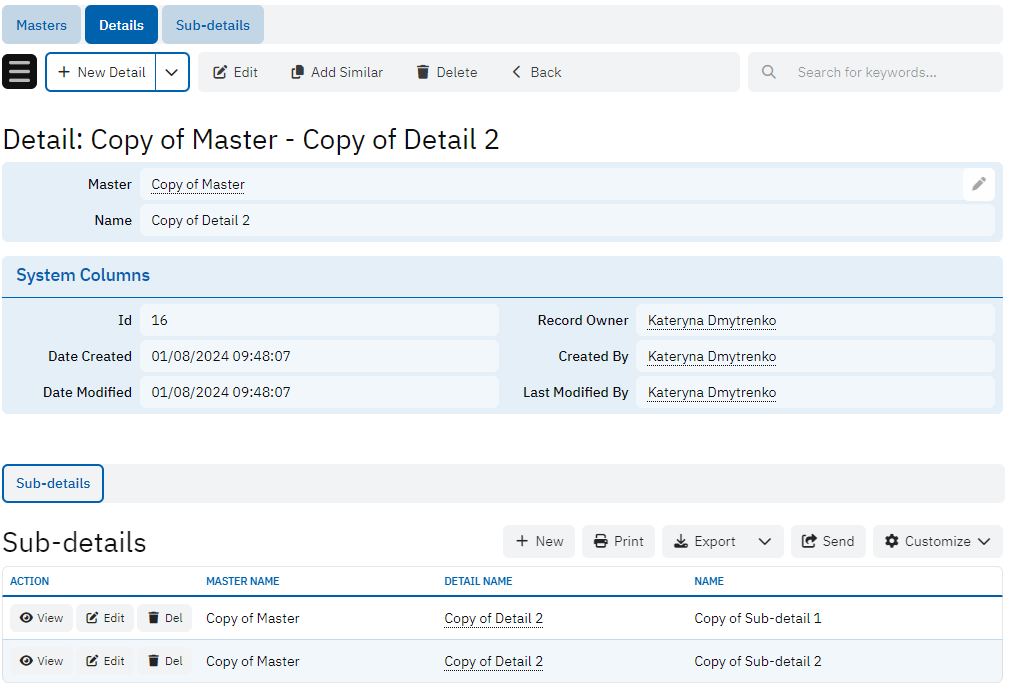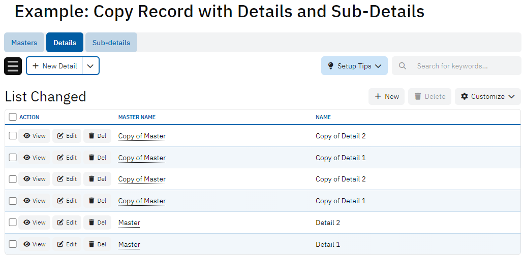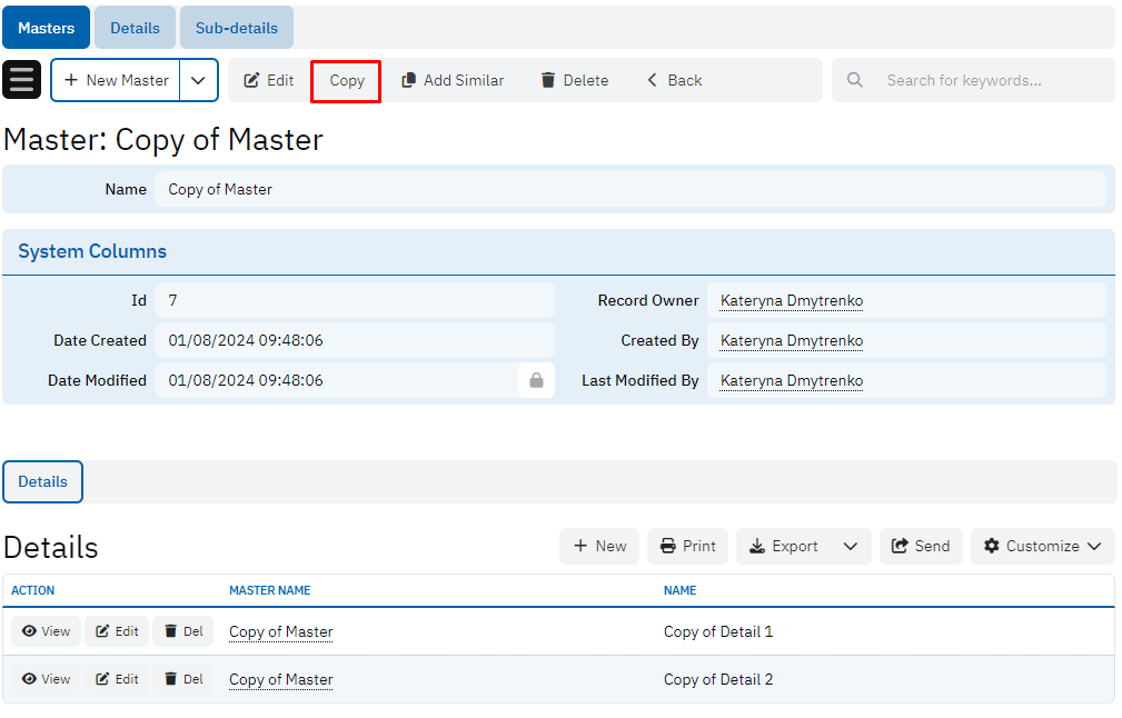Demonstrates the way to copy master record together with detail and sub-detail records. The logic is located at: