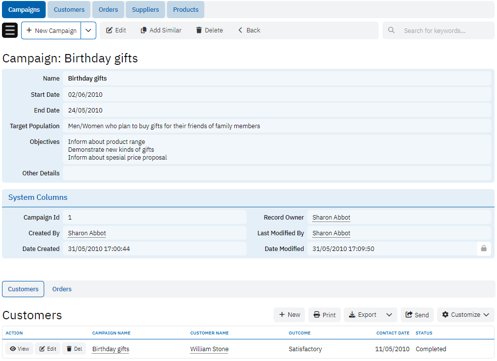 Overall, this database serves as a central repository for managing marketing campaigns, customer interactions, order processing, and supplier information, facilitating efficient operations and strategic decision-making.