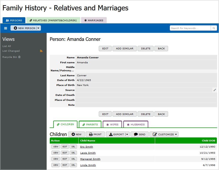 Overall, the "Family History - Relatives and Marriages" database provides a structured and detailed approach to documenting family history, enabling users to trace lineage, understand relationships, and preserve their family heritage for future generations.
