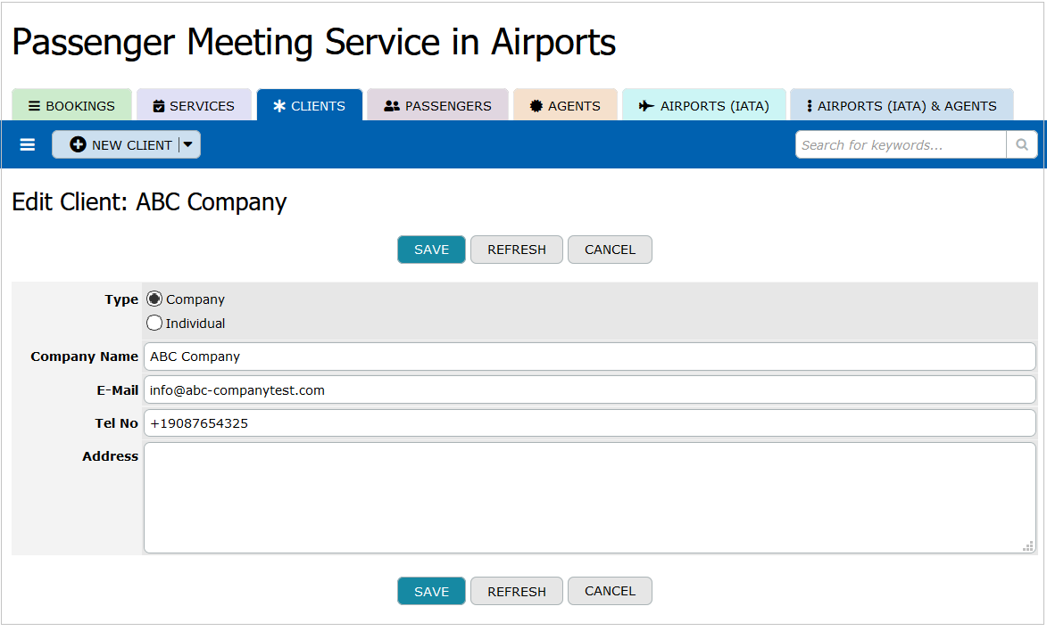 Clients: This table maintains records of all clients who use the passenger meeting service. It includes client ID, type, company name, contact person details, email, telephone number, and address. This information is essential for managing client relationships and ensuring effective communication regarding bookings and services.