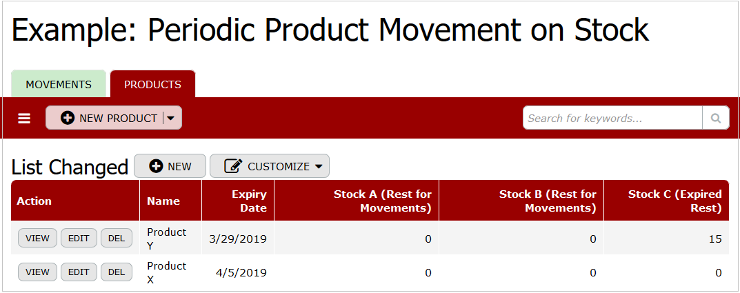 The Products table maintains comprehensive information about each product in the inventory. It includes details about the product's name, expiry date, and stock levels across different categories (such as available stock and expired stock). This table provides a complete overview of the products, allowing for effective tracking of inventory levels, planning for restocking, and ensuring that expired products are appropriately managed.
