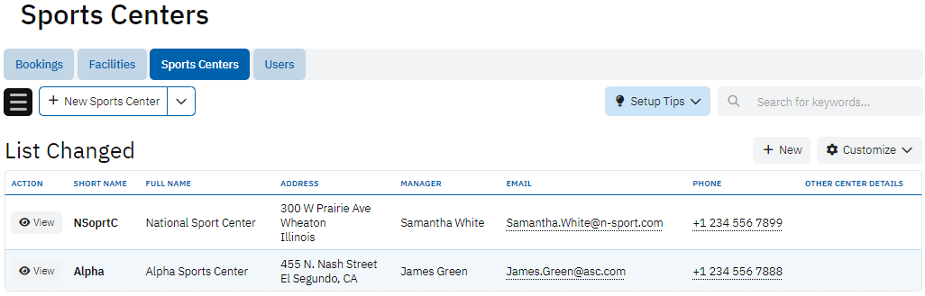 The Sports Centers table houses the details of the various sports centers managed by the database. This includes each center’s Short Name and Full Name, Address, and contact information for the Manager, as well as the Email and Phone number of the center. It helps in organizing the centers and ensuring communication with each center’s management is easy.