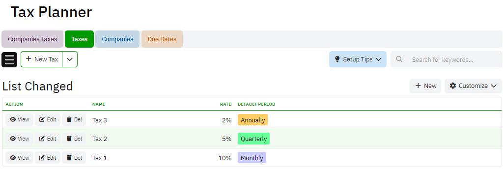 Overall, the "Tax Planner" database facilitates better tax management for companies, providing a clear and organized structure to track taxes, due dates, and company-specific tax details.