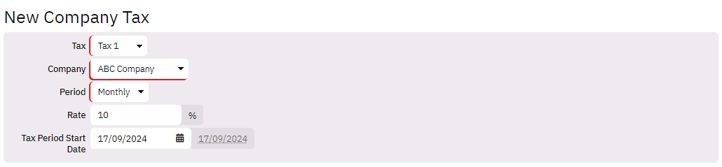 The Taxes table holds general information about the different types of taxes being tracked in the system. Fields such as Name, Rate, and Default Period are used to store tax details, which other tables can reference. This table ensures that the system has a comprehensive list of all relevant taxes, their applicable rates, and standard timeframes.