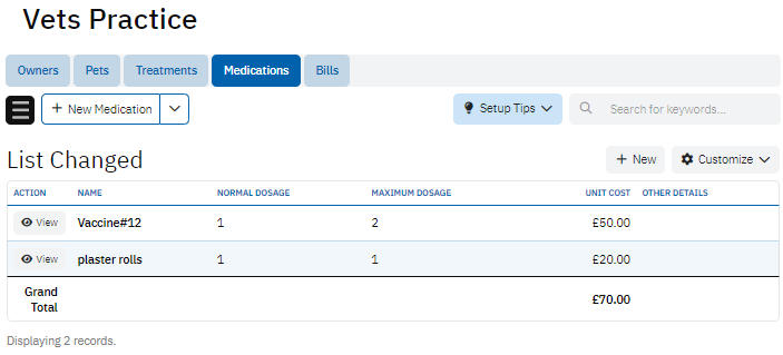 The Treatment Medications table links specific treatments to the medications used, recording details like Treatment Name, Medication Name, Quantity Used, and Cost. This provides a detailed record of the resources used for each treatment, helping in both medical tracking and financial accountability.