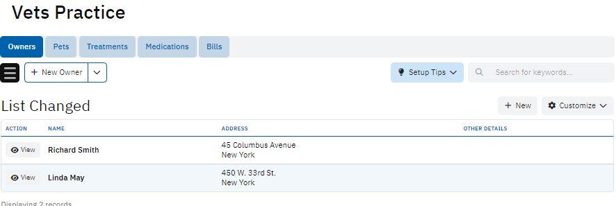 The Owners table stores essential information about the pet owners, such as First Name, Last Name, Address, and other relevant details. This table helps the clinic maintain accurate records of all clients who bring their pets in for treatment.
