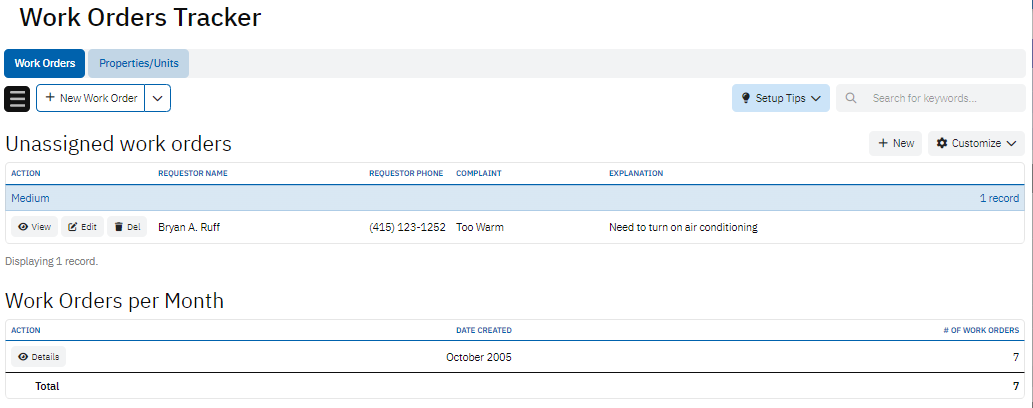 Together, these tables ensure that work orders are managed efficiently, with all relevant details about properties and maintenance requests organized in one comprehensive system.